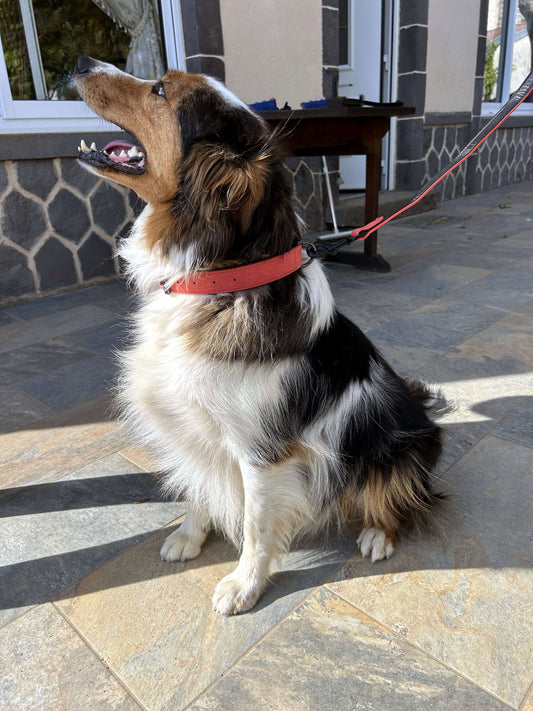 Collier rouge personnalisé + laisse assortie pour chien